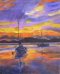 2014paars oranje horizon zeegezicht zee zeilboot water